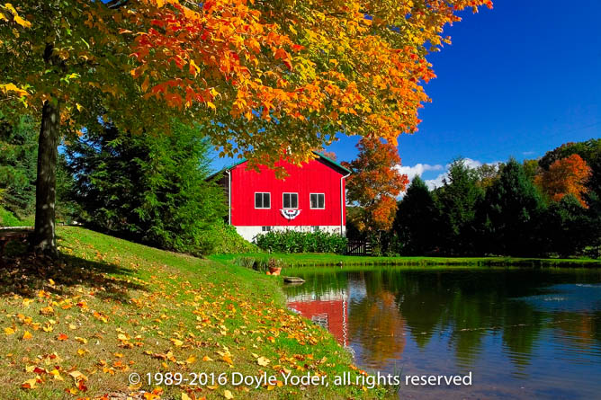 New Bedford, Coshocton Co. Ohio Red barn and bright trees reflecting in pond