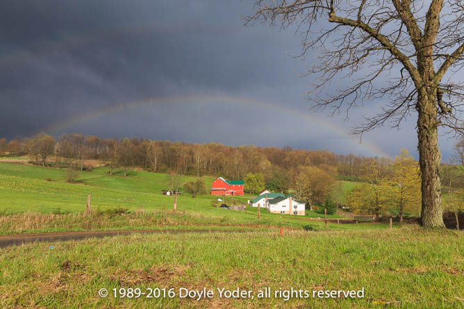 Berlin, Holmes Co. Ohio Rainbow behind white barn