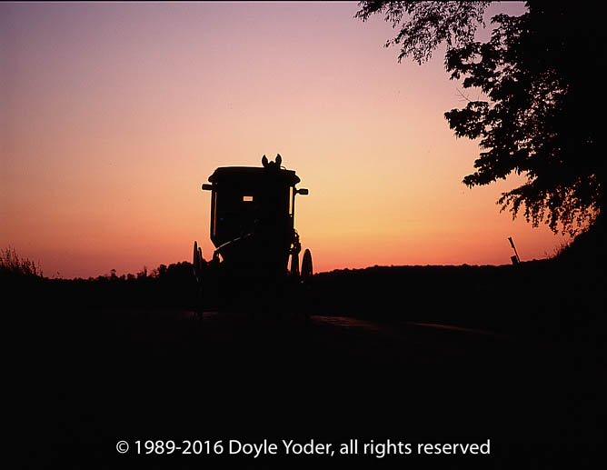 Bunker Hill, Holmes Co. Ohio Buggy going past on road with moon behind