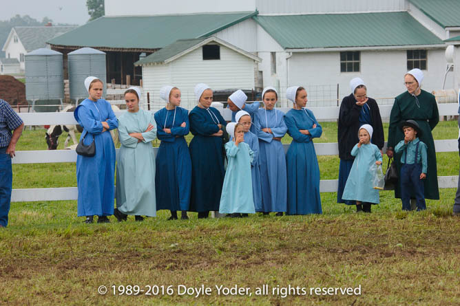 Mt. Hope, Holmes Co. Ohio Women and girls watching barn raising