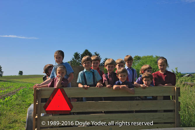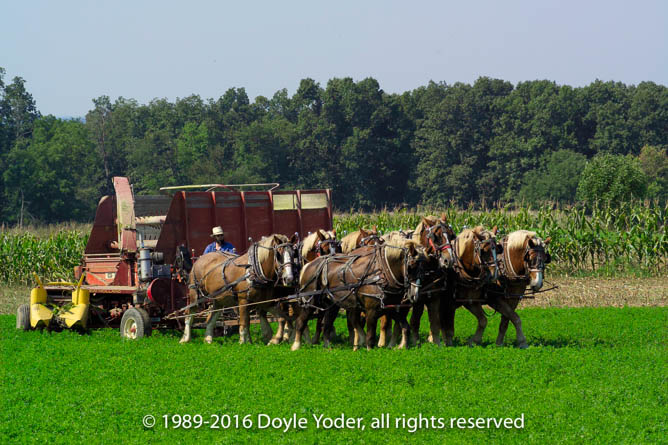 Walnut Creek, Holmes Co. Ohio wagons with cornstalks for filling silo at The Farm at Walnut Creek