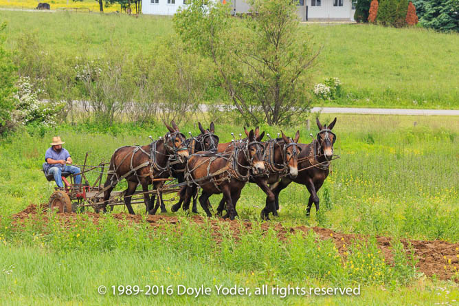 Mt. Hope, Holmes Co. Ohio Teams of horses and mules preparing field for planting